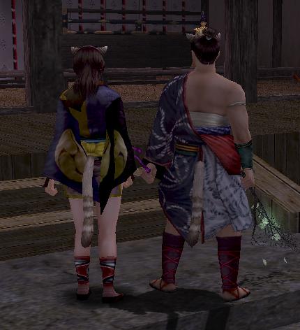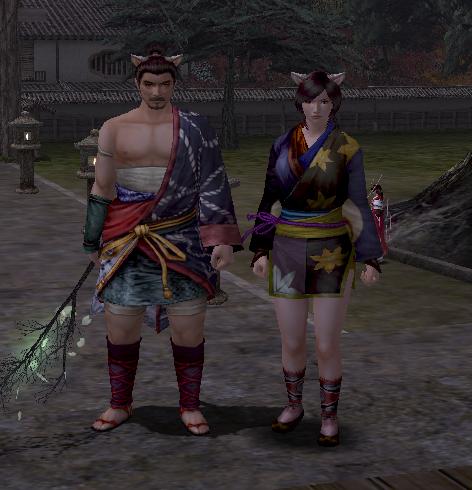 時代劇とかでよく旅人が着ている衣装ですね。後ろの外套はひらひらするので、鍛冶屋とかあまりひらひら系の装備がないキャラだと結構目新しくでいいです。一応染色は可能です。上の画像はノーマル染色ですが、クロとかにすると普通にかっこいい感じになるので、染めてみるのもいいかもしれませんね。(上級染料系なので漂白できないかもしれないです) 入手法は戦国絵巻の名所を全部回って、京都にいる茶屋四郎次郎というNPCに話しかけるともらえます。戦国絵巻って(特に名所・名物)は面倒なので、放置している人が大半ですが、勧誘待ちとかの間に回ってみるのもいいかもしれません。寄合所に名所地図のSSがありますので、それを参考にすると回りやすいかもしれませんね。その他いろいろとかわいかったりかっこよかったり、一風変わった家具などがもらえますので、ちょっとだまされたつもりで始めると楽しいかもしれませんよ!その内戦国絵巻のほうも記事にしてみようかな?と画策中な虎屋でした。 うしろに写っているのがご褒美家具です。金閣寺と銀閣寺のミニチュアですな。結構細かいところまで作ってあるので、見応えがある家具だと思いますよ!本当は将の具足の紹介目的の画像だったとかはナイショ(>_<) |