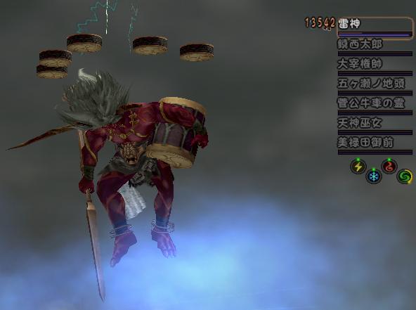 ポイントとしては風神・雷神のNPCの数が2体以上差ができるとダメなのと、特殊技が来たときはもう一方の徒党にも被害がでるので、可能な限りとめる(晴天祈願の舞をする)ってところですかね。 虎屋がお邪魔させていただいたのは雷神のほうでした。構成は刀、忍法、武士、神通、密教、武芸、神典(虎屋)でした。いろいろ事前にネットで情報を集めていたのですが、思ったよりきつかったです!イソとは別次元です。片方が安定していてももう一方が失敗するとアウトですので、自分のミスで負けてしまうとショックも2倍です。雷神のほうは痺雷(だったかな?)っていう準備技があるんですが、全体術+麻痺効果なので通ってしまうとほぼ負けが決定してしまう凶悪で、加えて不動効果、一所持ち2人いて止め役の人は大変そうでした。大音響があれば役に立てたのにと、ちょっと悔しかった虎屋でした。何度か壊滅して、5,6回目のチャレンジ!壊滅寸前で奇跡の完全全体が通ったり、薬師さんの水が切れたりでハラハラドキドキしながらも何とかクリアできました。皆様お世話になりました!(感謝) そして、こんなドロップ帯と福引アイテム。神典としてはほしかった帯ですが、ロット運のまったくない虎屋はもちろん負けました!そして福引アイテムも失敗してションボリ。でも、イソと違って緊張感もあるし、良い刺激になりました。戦国絵巻もあるし、今度は風神もやってみたいですな。焔の室とカグヅチのスクショもバッチリとったので、また今度の世帯と思います。では~^^ |